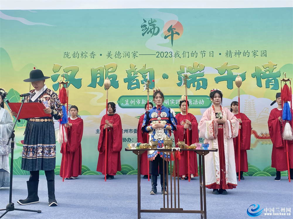中國蘭州網6月21日訊 (全媒體記者 鄒戟羽) 6月20日,漢服韻·端午情2023“我們的節日·端午”蘭州市新時代文明實踐主題活動在中山橋南廣場啟動,蘭州市文明家庭、最美家庭,蘭州市道德模范,蘭州好人等先進典型人物代表參加活動。