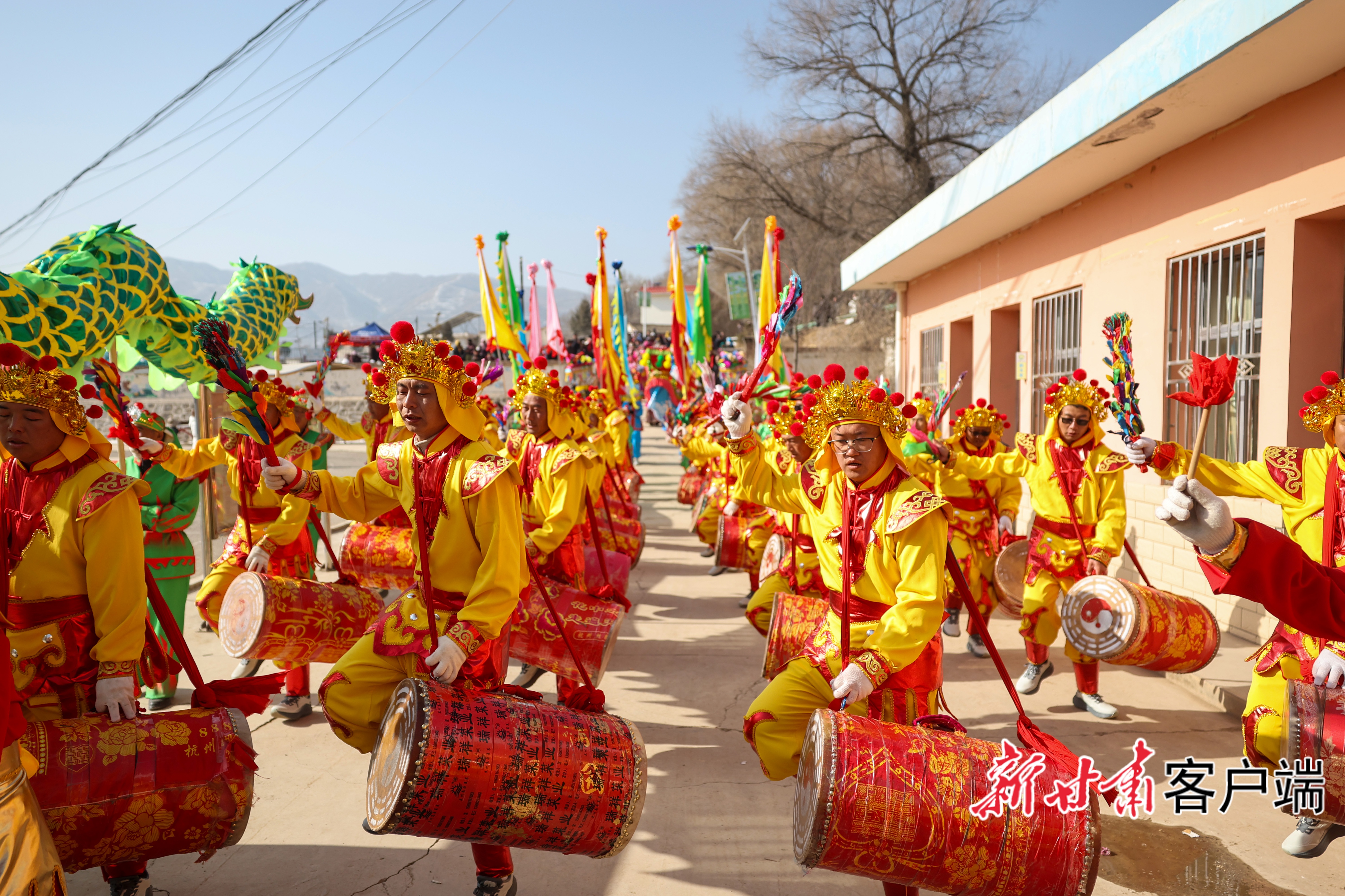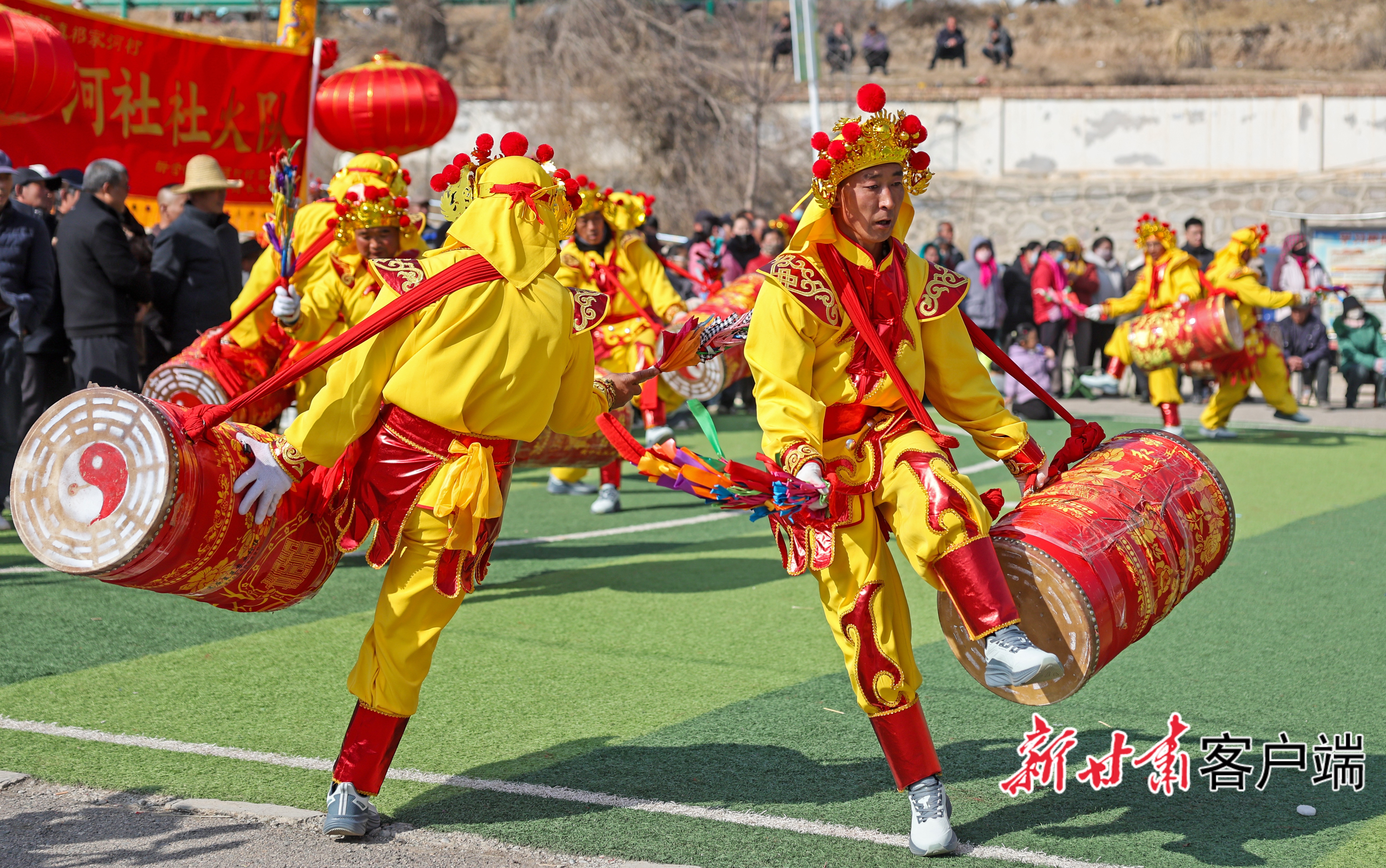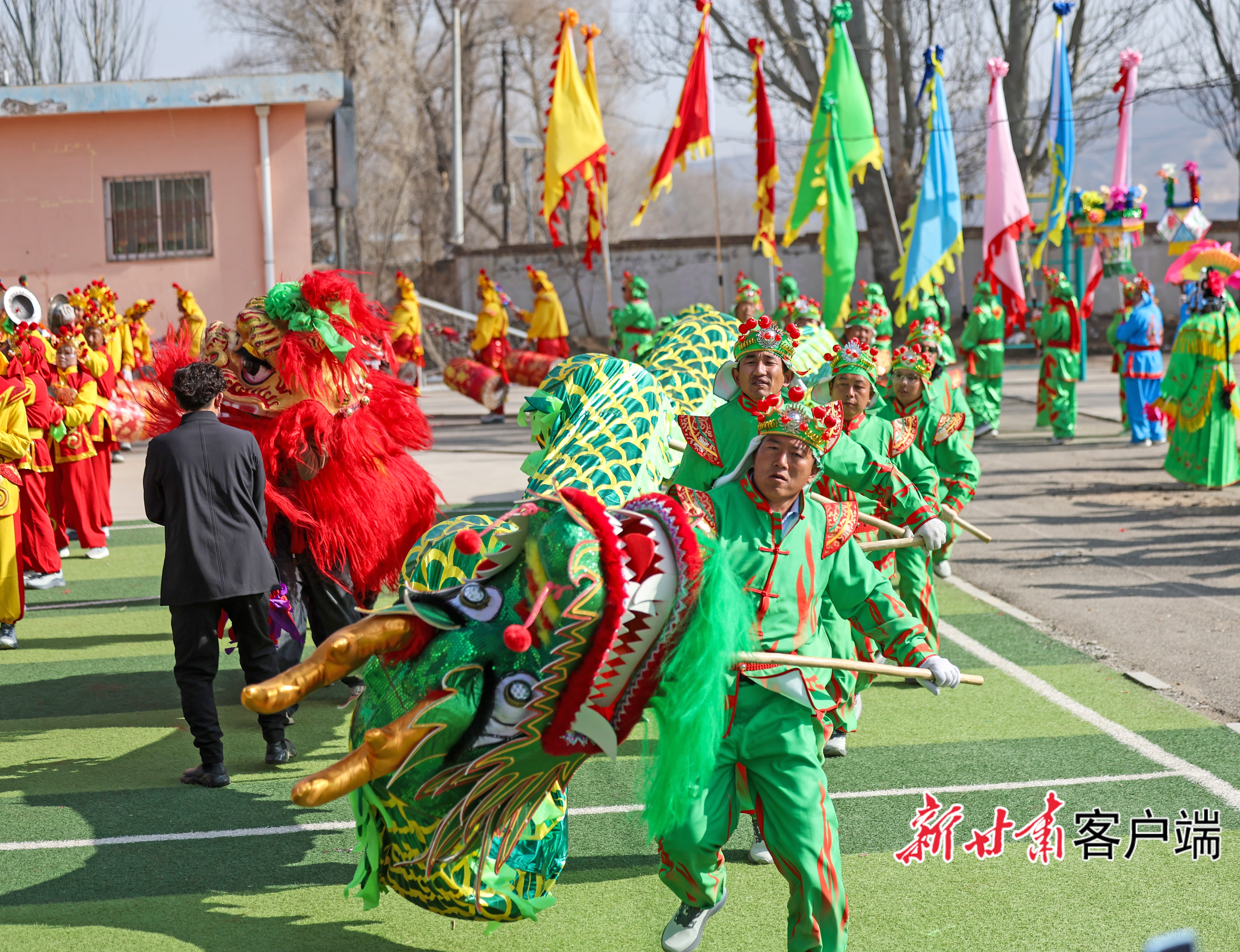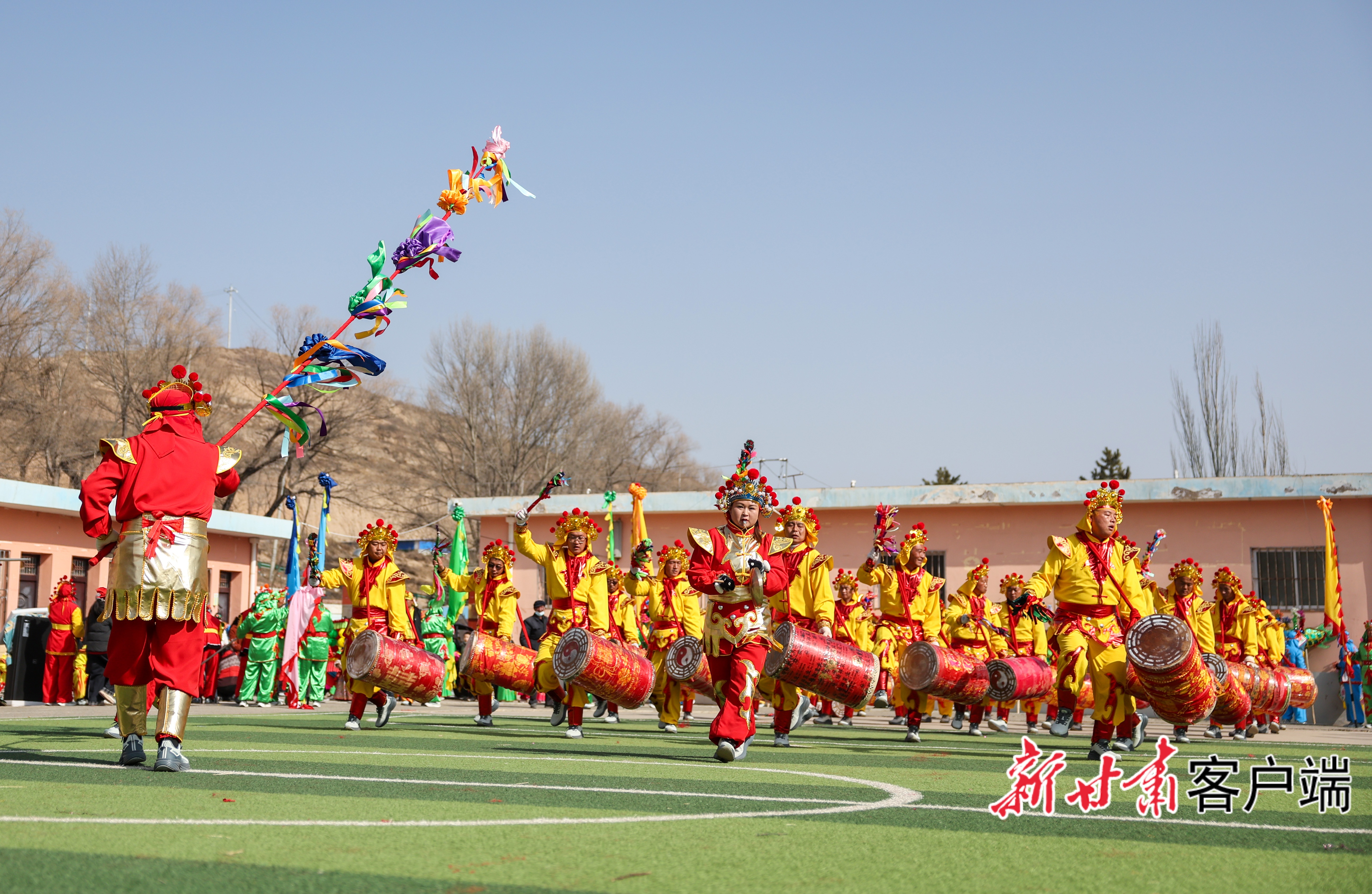臘月十六,年關(guān)將近,馬銜山下,鑼鼓喧天。2月3日,在蘭州市榆中縣新營鎮(zhèn)祁家河村祁家河小學(xué)的操場上,一支200余人的社火隊(duì)伍正緊鑼密鼓地進(jìn)行春節(jié)前的最后彩排。
